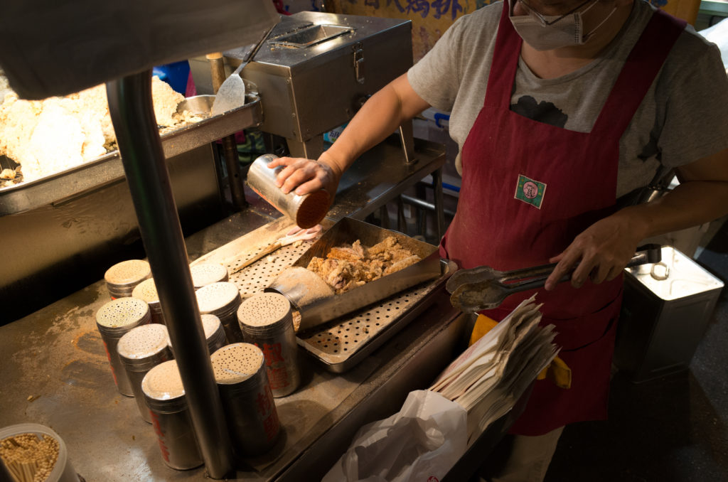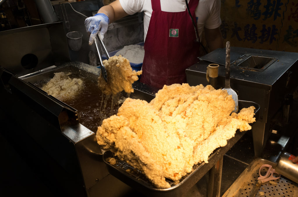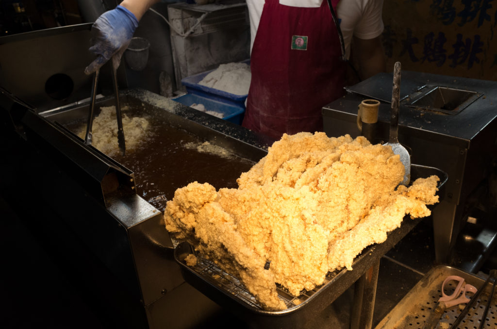Giant fried chicken at Raohe Night Market in Taipei. Sadly though most of the giant-ness is flour and not actually chicken.